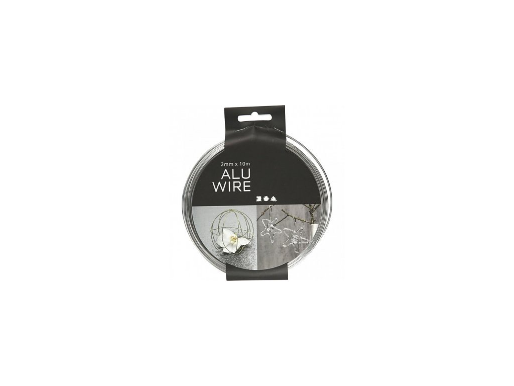 Hliníkový drát lakovaný na stříbrnou barvu, vhodný pro techniky drátkování a různé další tvoření. Délka drátu v balení je 10m, průměr 2mm. Výroba v EU.
