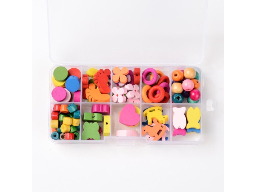 Barevné dřevěné korálky - mix tvarů (cca 100ks)