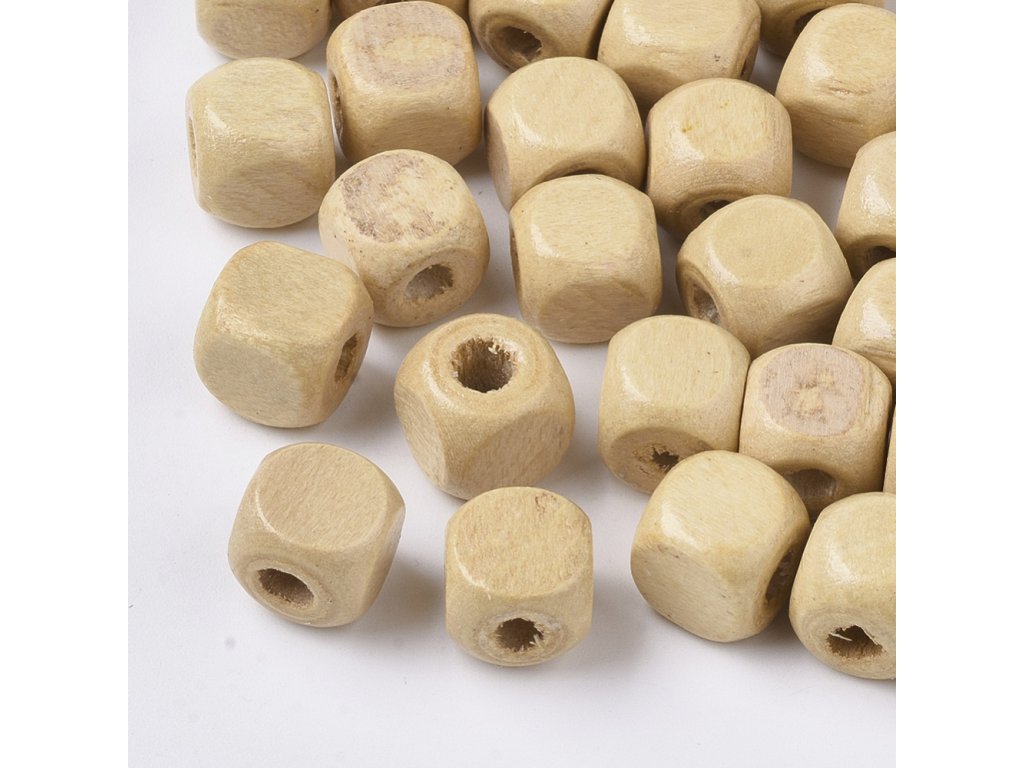 Dřevěné korálky. Kostky stačí navléci na pruženku, kloboukovou gumičku nebo paměťový drát a veselý náramek je během chvilky na světě.