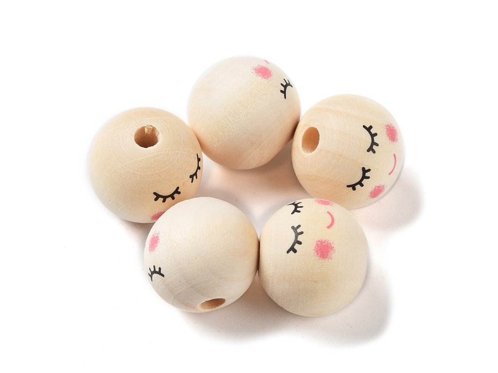Dřevěné korálky s obličejem 20mm (10ks) (A)