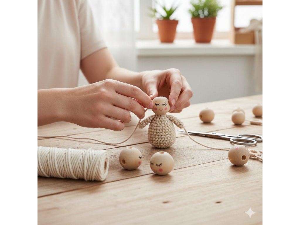 Dřevěné korálky s malovaným obličejem. S jejich pomocí si můžete vytvořit různé postavičky, uháčkovat panáčka, vytvořit veselý náhrdelník, vyrobit prstové maňásky, veselé zápichy do květináče apod.