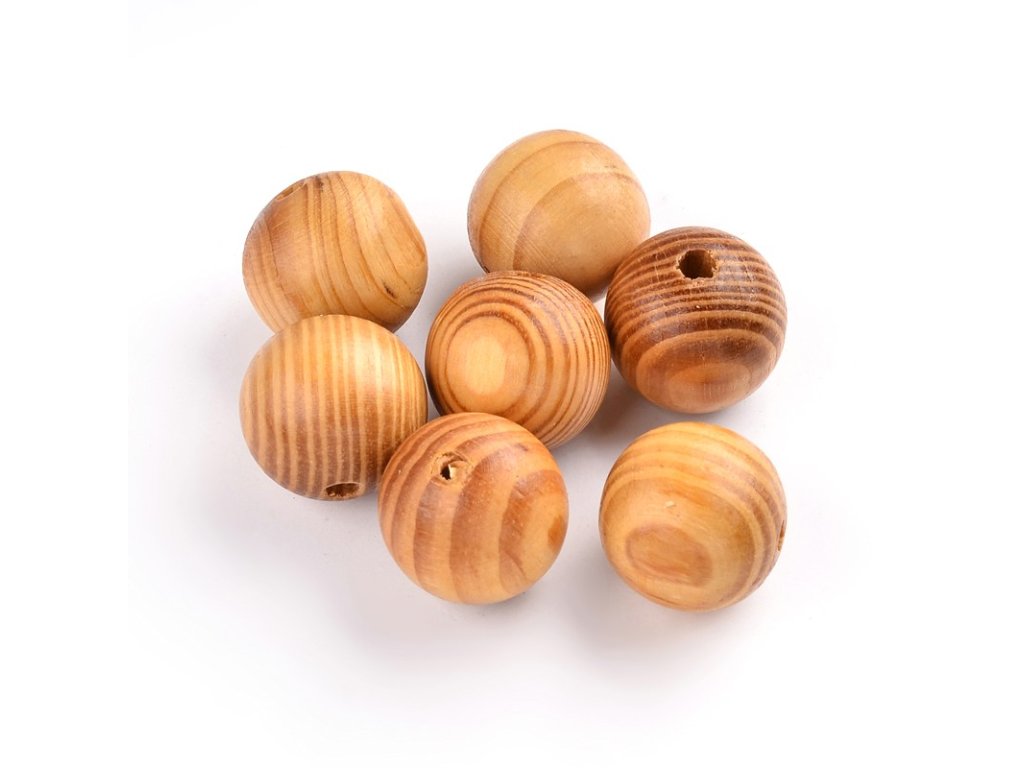 Dřevěné korálky s výraznou kresbou dřeva. Korálky nejsou lakované, ale napuštěné speciální lazurou, aby struktura dřeva ještě více vynikla. Průvlek cca 5,5mm.