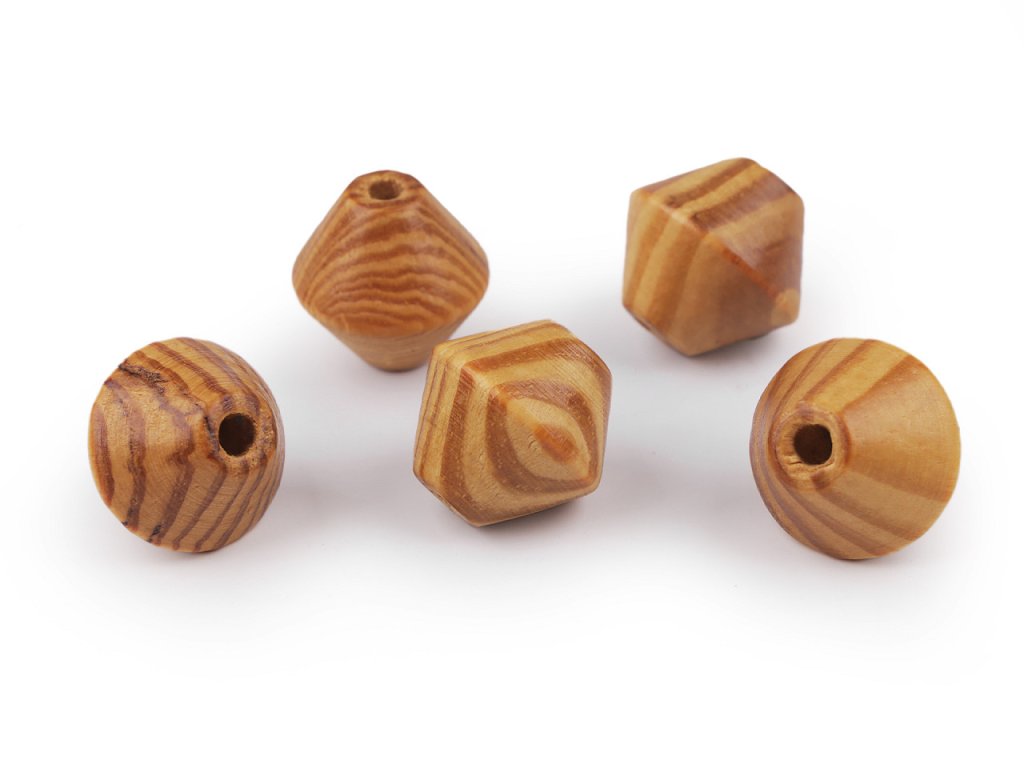 Dřevěné korálky s výraznou kresbou dřeva jsou lakované. Díky většímu průvleku lehce navlékají na šňůrky, provázky apod. Jsou oblíbené na zdobení výrobků zhotovených technikou macramé, různých závěsů na květináče, dekorativních obrazů, tašek apod. Své využití najdou i při výrobě lapačů snů, hodí se na výrobu postaviček, zvířátek apod.
