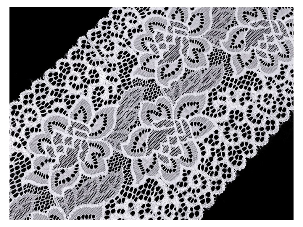 Široká elastická krajka je vhodná k ozdobení šatů, halenek, sukní nebo k výrobě bandeletek.