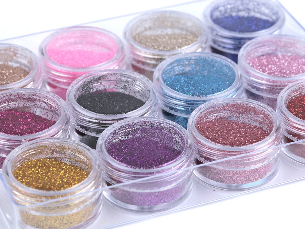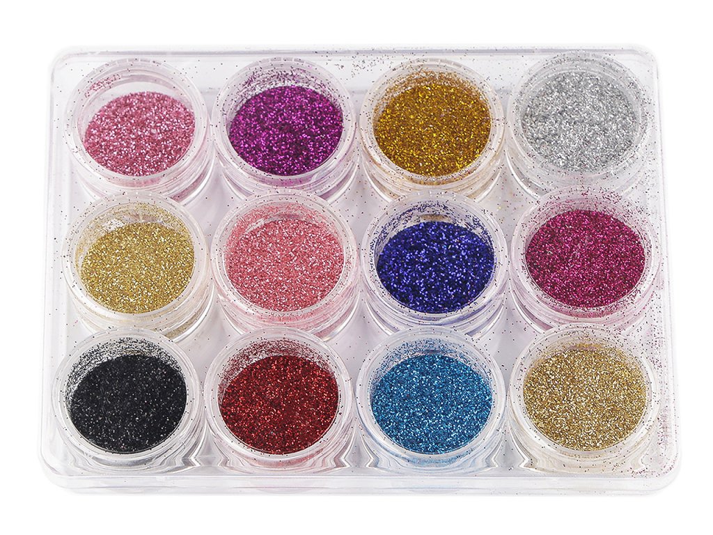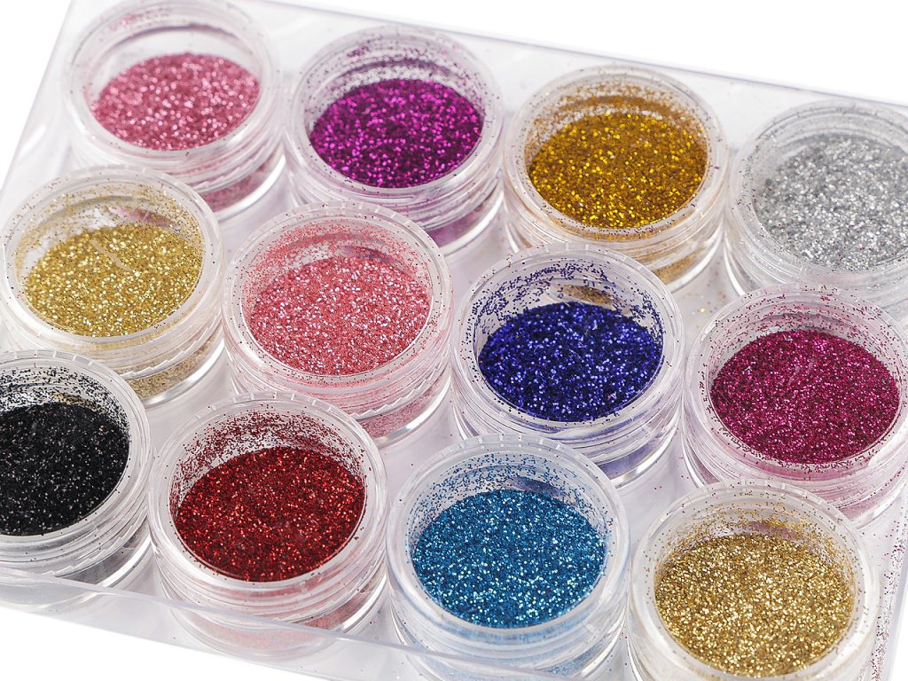 Sada 12 barev sypkých glitrů ve šroubovacích dózách se hodí na ozdobení prakticky čehokoliv. v oděvním průmyslu používají jako dekorace na textil. Pokud přidáte glitry do barev či lepidla, můžete jimi na oděvu vytvořit třpytivý efekt. Své využití mají i v technice scrapbooking. Hodí se na výrobu přáníček či jmenovek nebo ke zdobení vánočních ozdob. Můžete se s nimi setkat také u karnevalových ozdob, dokonce je najdete i na obuvi.