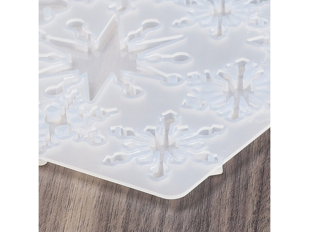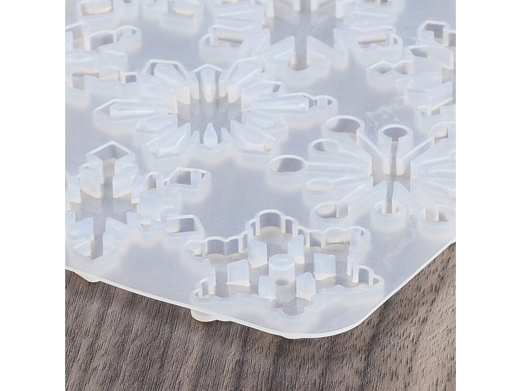 Silikonová forma s motivem sněhové vločky je ideální pro opakované odlévání, vhodná pro výrobu šperků a ozdob. Výsledné odlitky mohou být průhledné nebo dobarvené speciálními barvivy, čímž vytvoříte unikátní přívěsky.