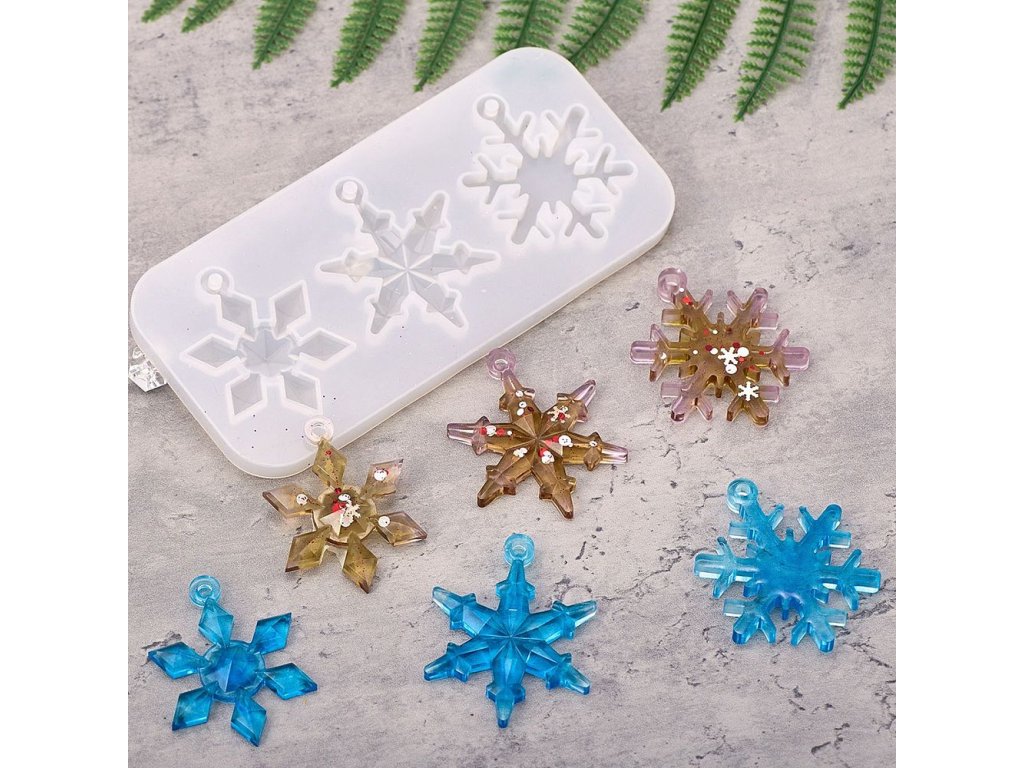 Silikonová forma na pryskyřici s motivem sněhové vločky je ideální pro opakované odlévání pryskyřice, vhodná pro výrobu šperků a ozdob. Výsledné odlitky mohou být průhledné nebo dobarvené speciálními barvivy, čímž vytvoříte unikátní přívěsky.