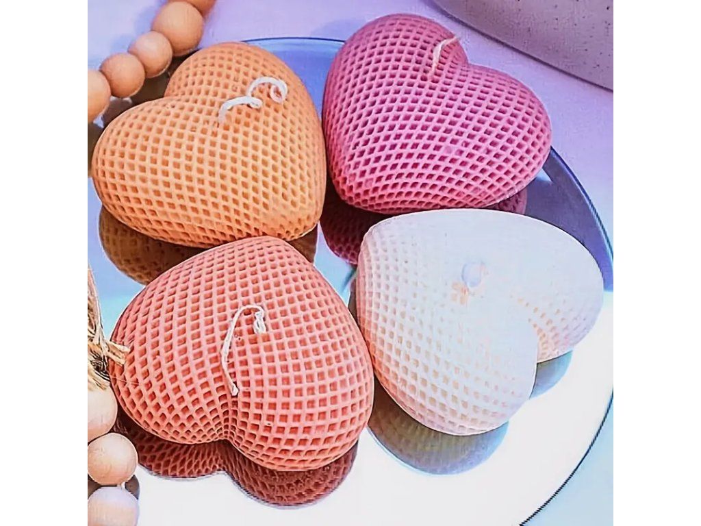 Silikonová forma 34x55x60mm - SRDCE S MŘÍŽKOVÝM VZOREM