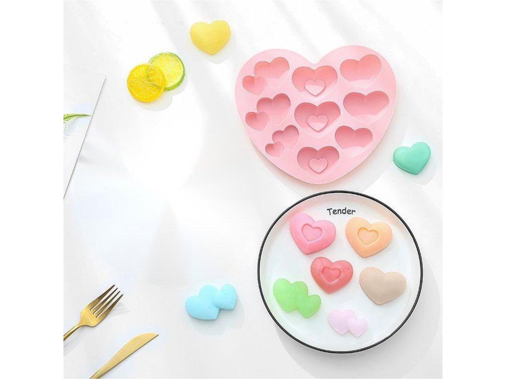 Velikost formy: 208 x 185 x 20 mm, srdíčko: 39 x 53 mm; středové srdíčko: 43 x 60 mm; dvojité srdíčko: 45 x 66 mm