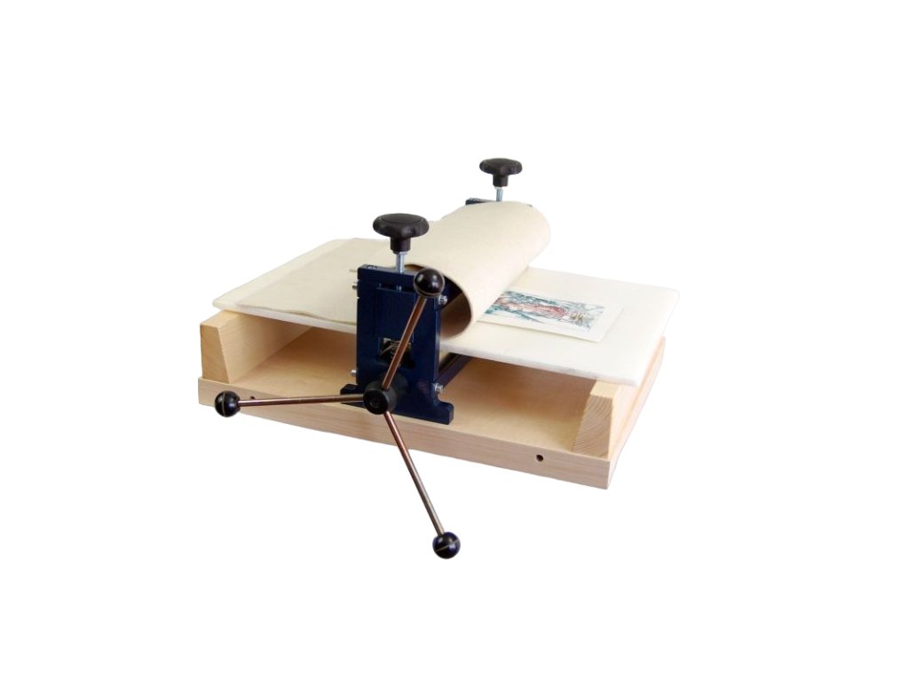 Grafický lis pro formát papíru do A2. Součástí lisu je deska o síle 1cm (tvrzený plast) a rozměru 44x66 cm a filc o síle 3 mm. Vhodný na tisk linorytů, suché jehly, monotypů, leptů a dalších graf. technik.