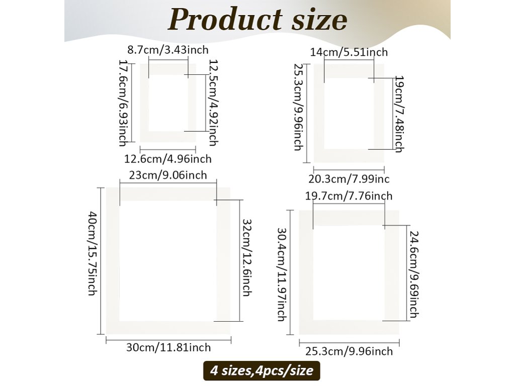 Papírová pasparta, 4 velikosti - bílá (16ks)