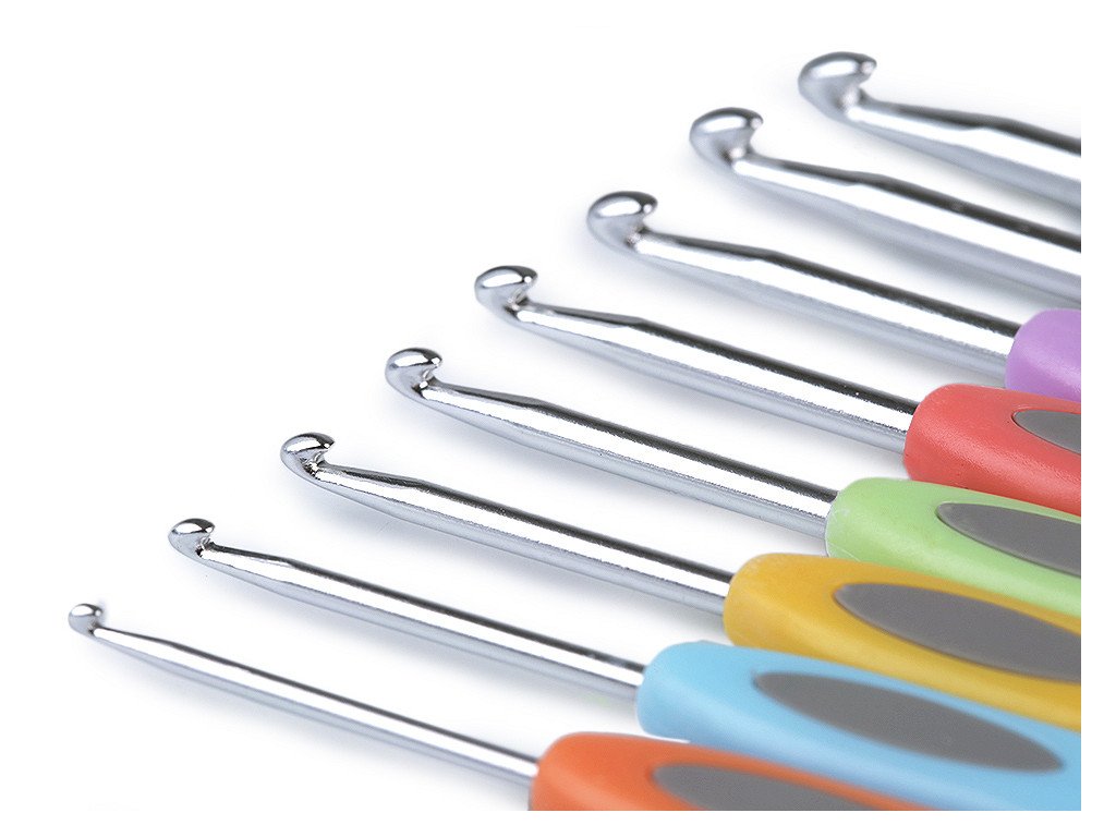 Sada háčků na háčkování obsahuje 8 háčků následujících velikostí: 2,5; 3; 3,5; 4; 4,5; 5; 5,5; 6.