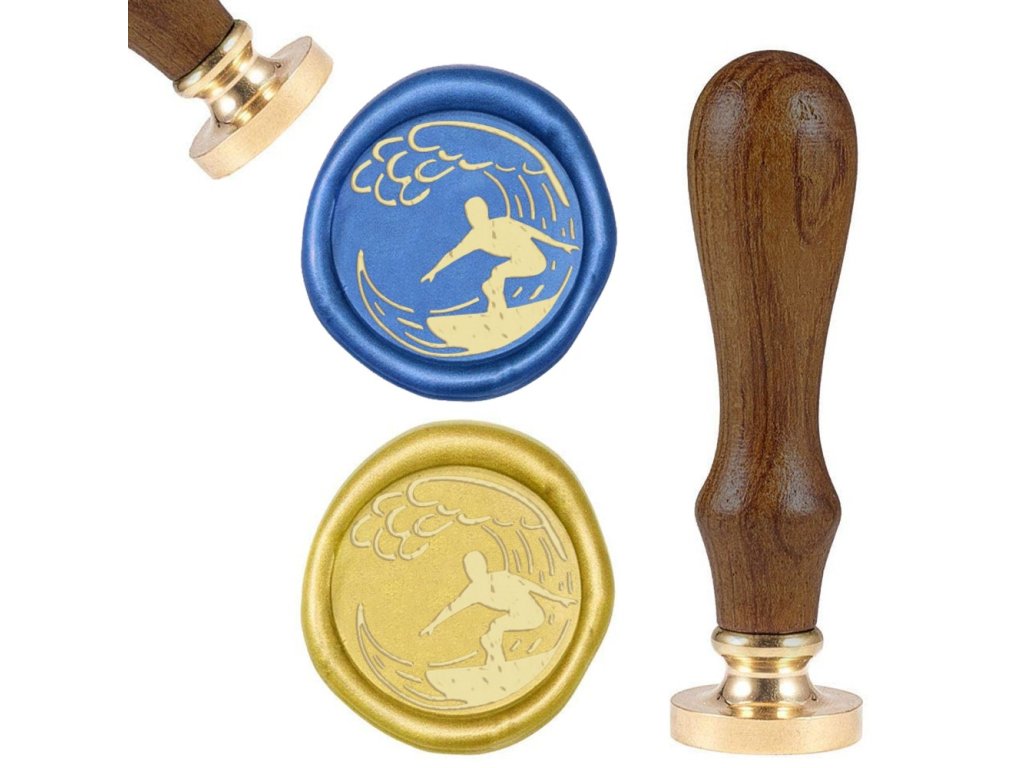 Kovové pečetidlo s dřevěnou ručkou pro práci s pečetními vosky.