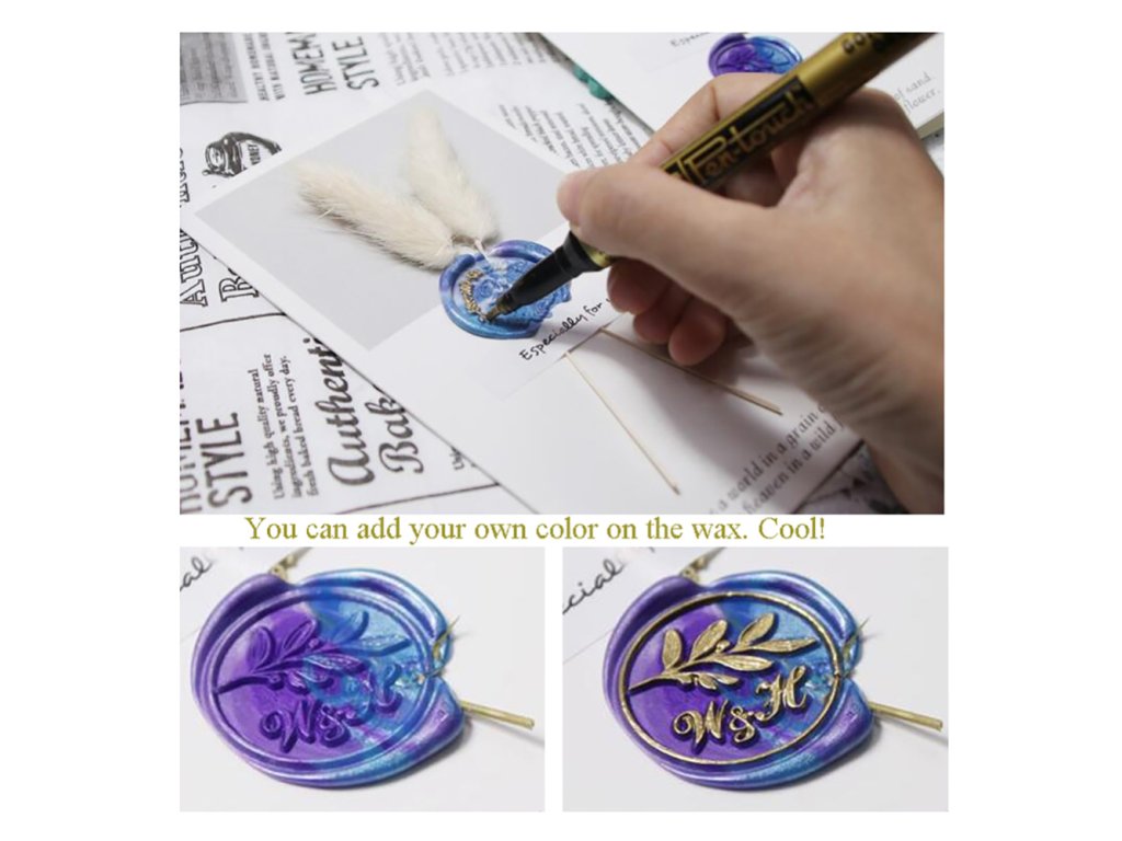Kovové pečetidlo s dřevěnou ručkou pro práci s pečetními vosky.