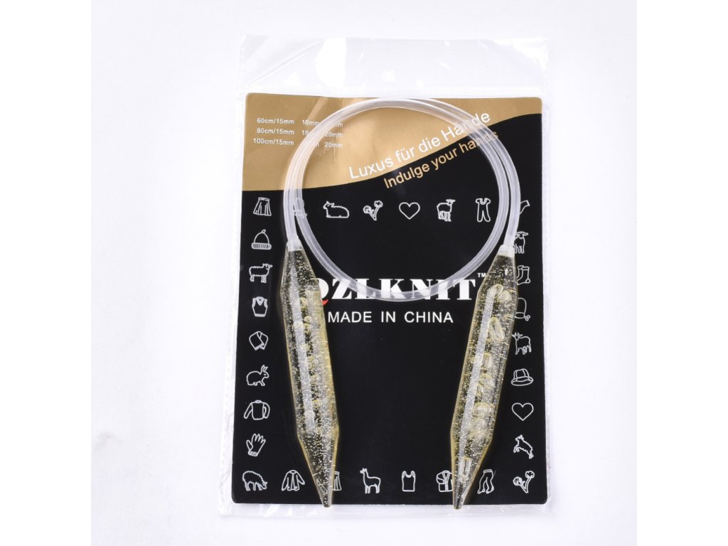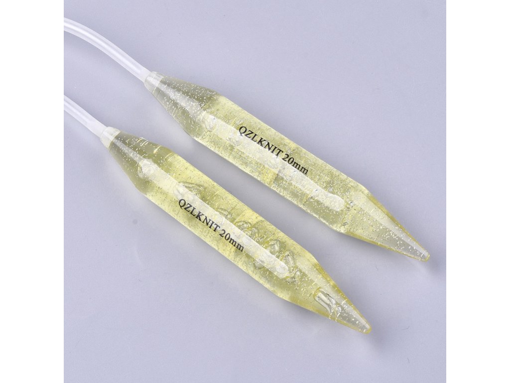 Tyto kulaté jehlice jsou vyrobeny z pevného plastu se speciální povrchovou úpravou. Jsou spojené průhlednou plastovou šňůrkou a jsou lehké díky použitému materiálu. Vhodné i na cestování, resp. jako cestovní jehlice.