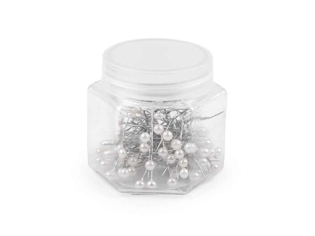 Špendlíky s perleťovou plastovou hlavičkou využijete jako ozdobu květinových vazeb, k vypínání stuh při tvoření dekorací nebo k tvoření svatebních vývazků.