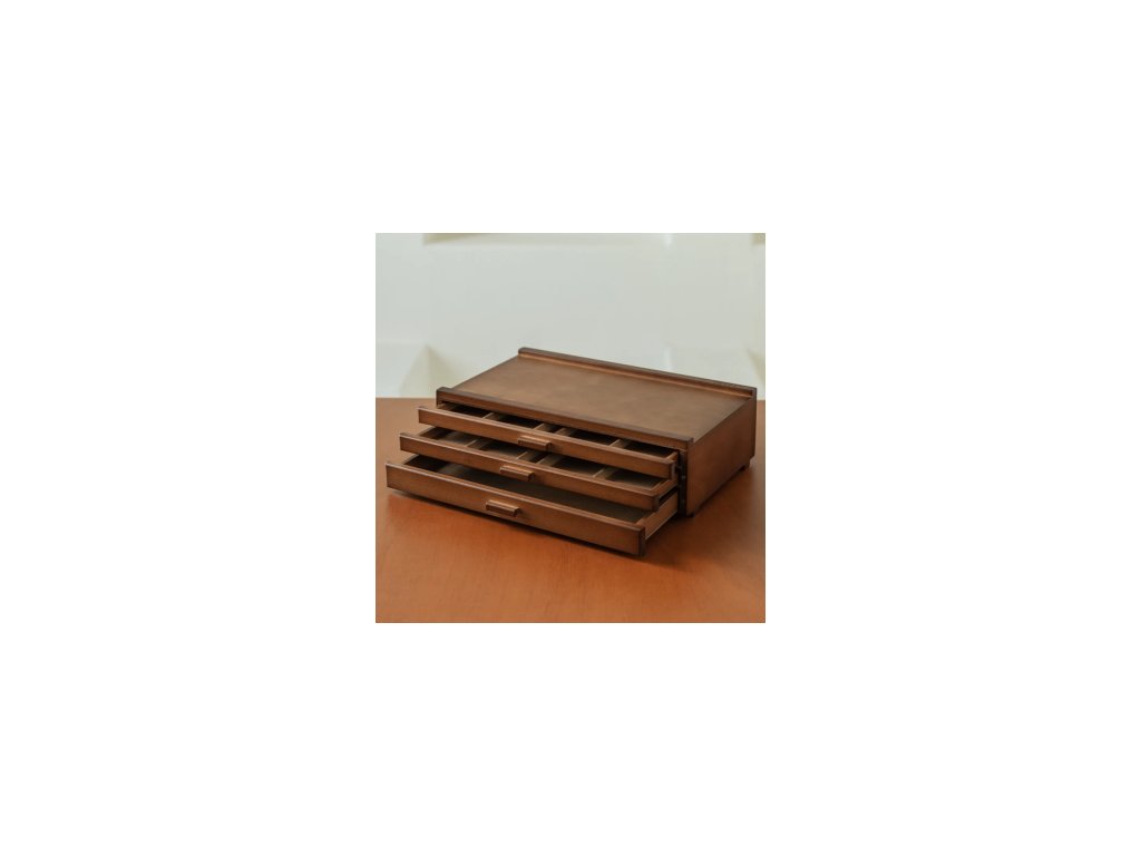 Dřevěná kazeta se třemi šuplíky na umělecké potřeby. Kazeta dobře poslouží jako organizér, kreslící deska a dekorace vašeho stolu v jednom. Šuplíky jsou vyjímatelné. Do kazety můžete uložit pastely, štětce, pastelky, tužky a drobné doplňky.