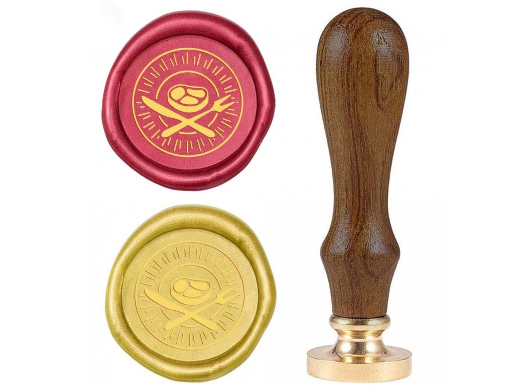 Kovové pečetidlo s dřevěnou ručkou pro práci s pečetními vosky.