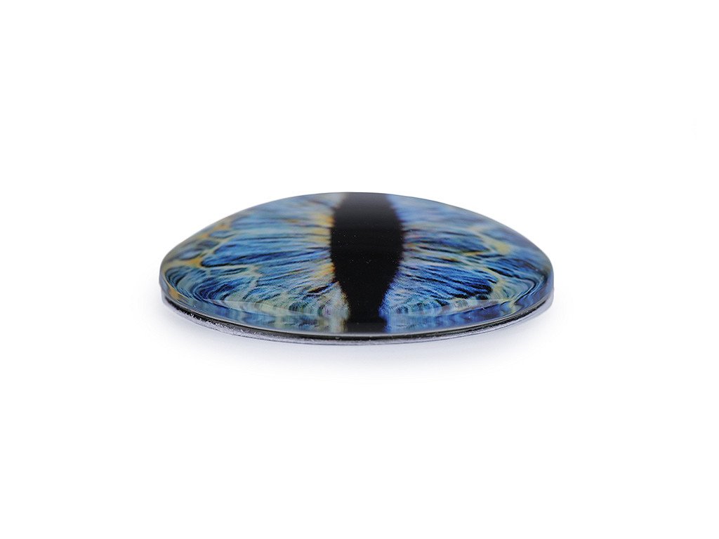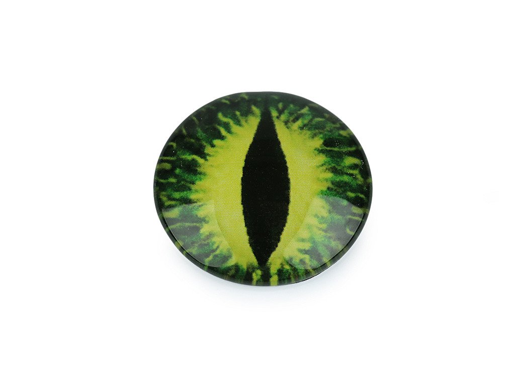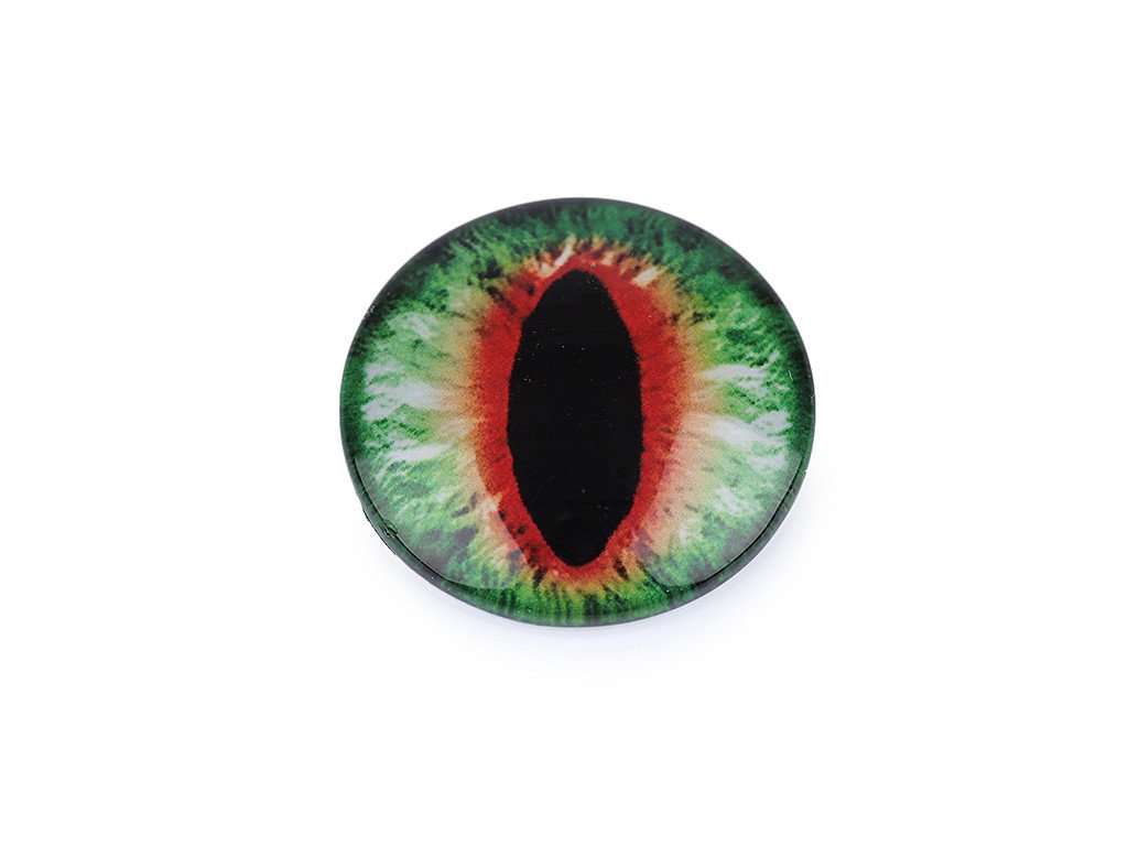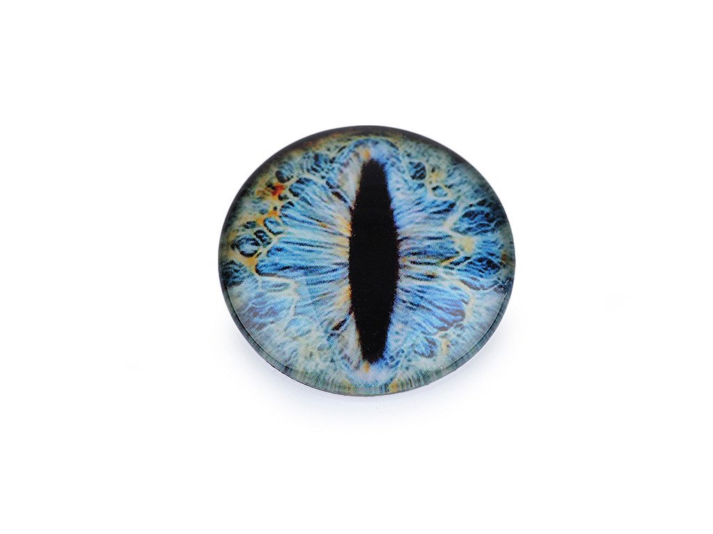 [Kulaté skleněné oči s motivem dračího oka mají kvalitní zpracování. Díky tvaru vypouklé čočky obrázek oka krásně vynikne. Využijete je na tvorbu různých postaviček a zvířátek. Pro jejich přilepení je vhodné použít lepidlo na lepení kamínků. S oblibou se používají i na výrobu bižuterie, jako kabošony jsou vhodné k nalepení do kovového lůžka nebo k obšití korálky a rokajlem. Velice působivé jsou v drátovaných špercích.]