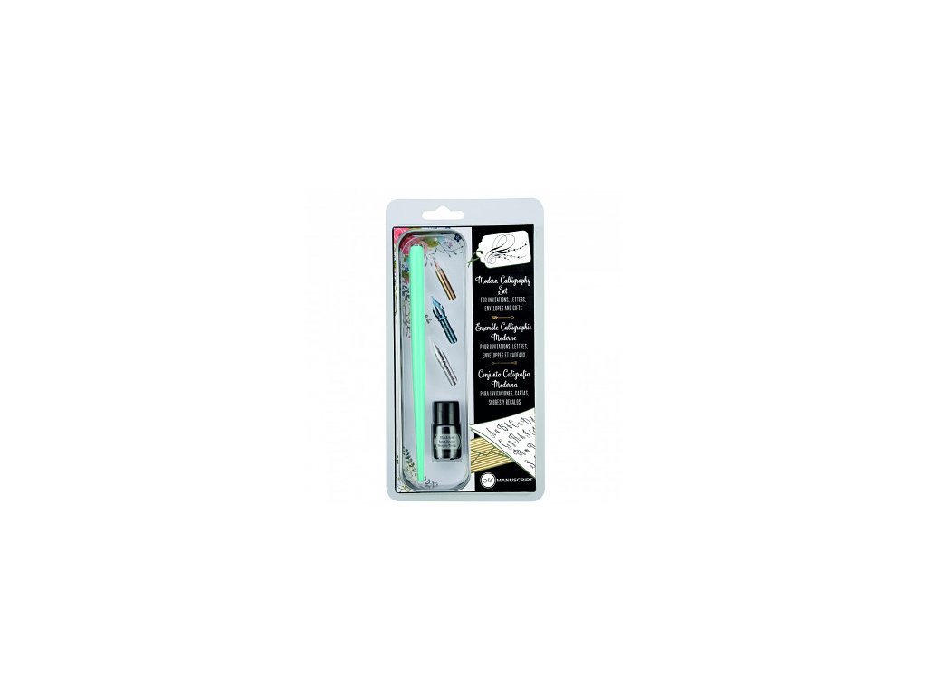 Moderní kaligrafický set pro začátečníky i pokročilé od briského výrobce Manuscript. V sadě najdete základní pomůcky pro kaligrafii - násadku, 3 různě tvarovaná perka a inkoust 7 ml. Součástí sady je také kovové pouzdro pro praktické i stylové uchovávání sady. Tradiční kvalita v moderním provedení za super cenu.