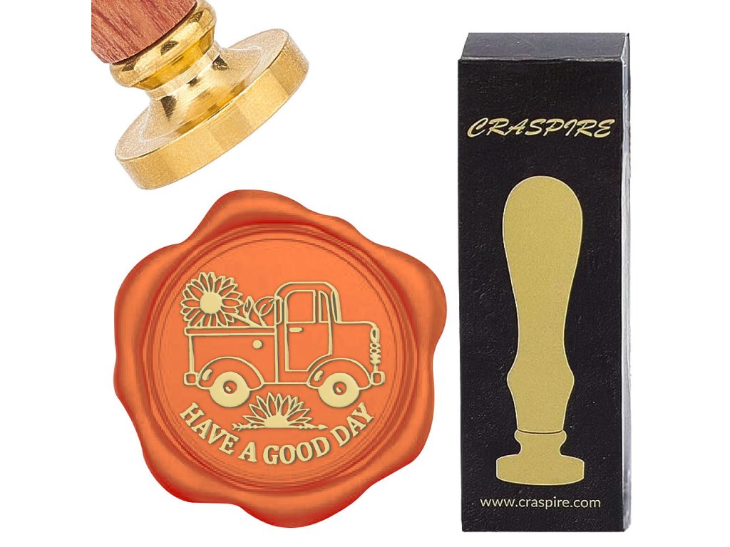 Kovové pečetidlo s dřevěnou ručkou pro práci s pečetními vosky.