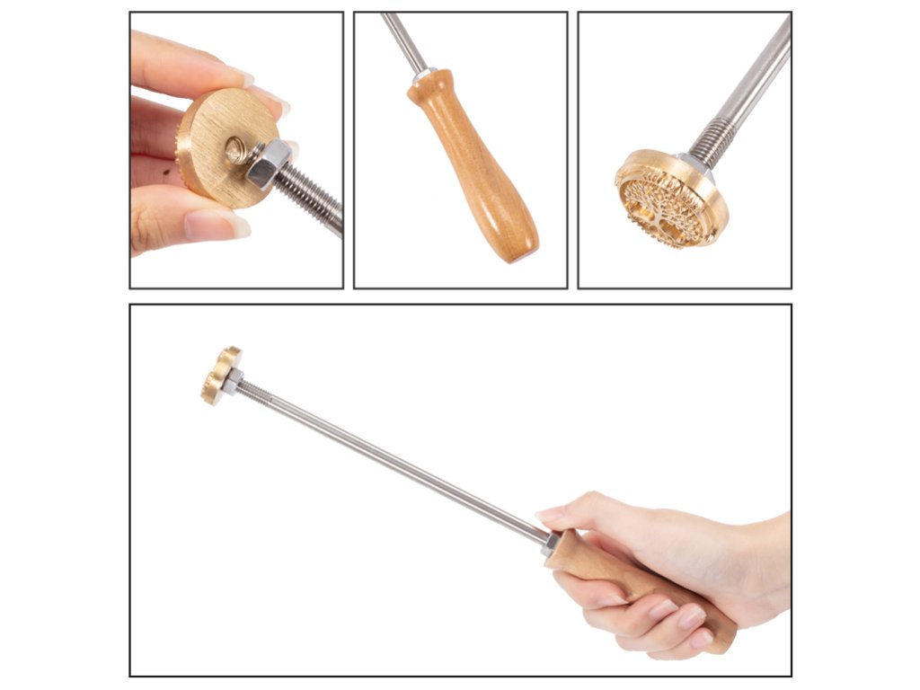 Kvalitní mosazná raznice s kovovým držadlem a dřevěnou ručkou je perfektní pro kreativní tvoření, především na vypalování do dřeva. Raznici můžete využít také na zdobení kožených výrobků nebo pečetění.