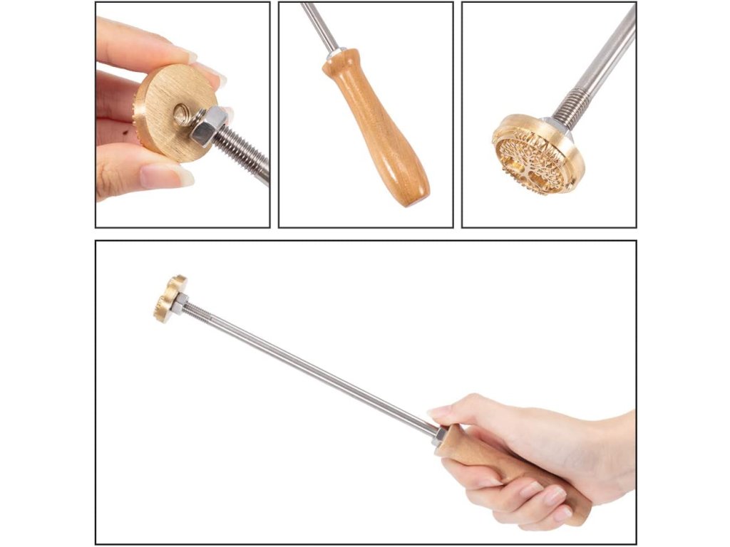 Kvalitní mosazná raznice s kovovým držadlem a dřevěnou ručkou je perfektní pro kreativní tvoření, především na vypalování do dřeva. Raznici můžete využít také na zdobení kožených výrobků nebo pečetění.