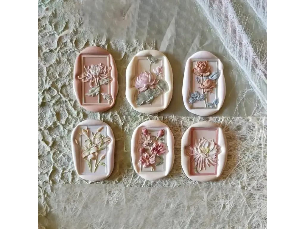 Sada pečetidel s dřevěnou ručkou pro práci s pečetními vosky.