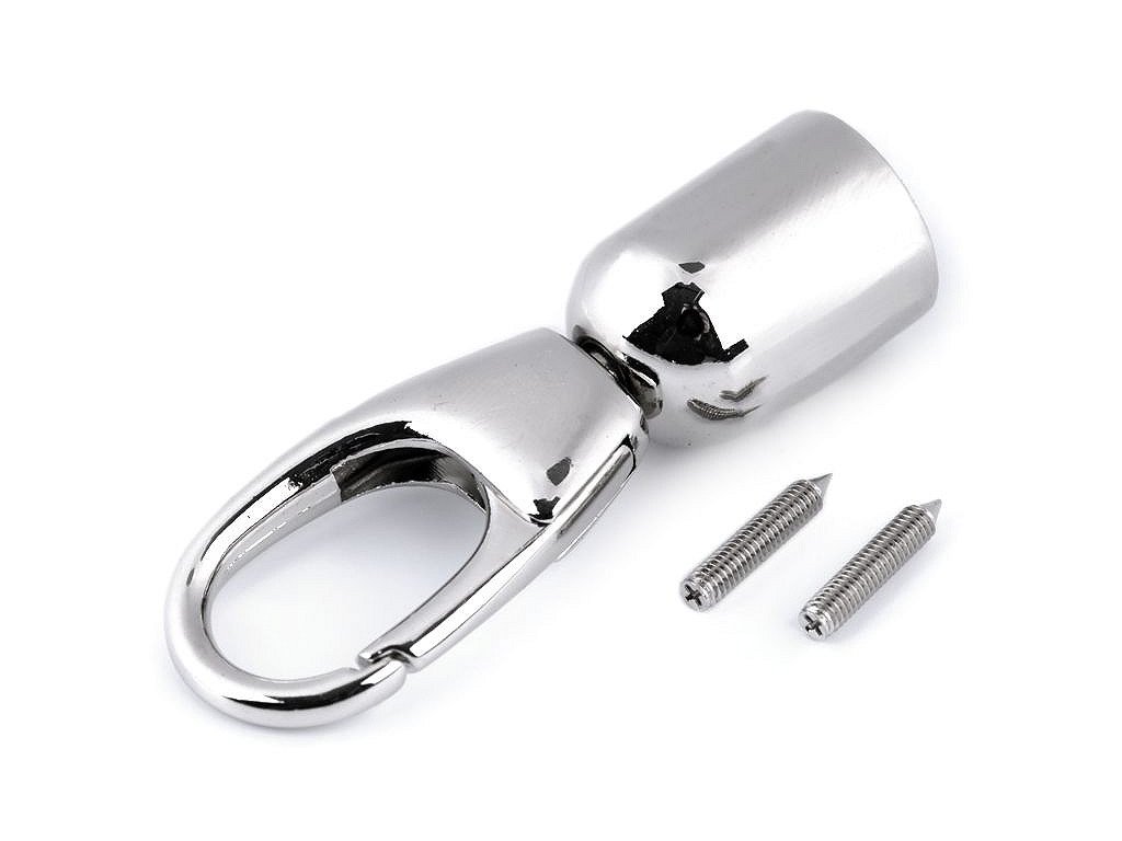 Koncovka na ucha tašek či kabelek má praktickou karabinu. Do koncovky přilepíte konec šňůry a následně ho uchytíte pomocí šroubků. Šňůru, která je do koncovky vhodná, najdete pod kódem 510683.