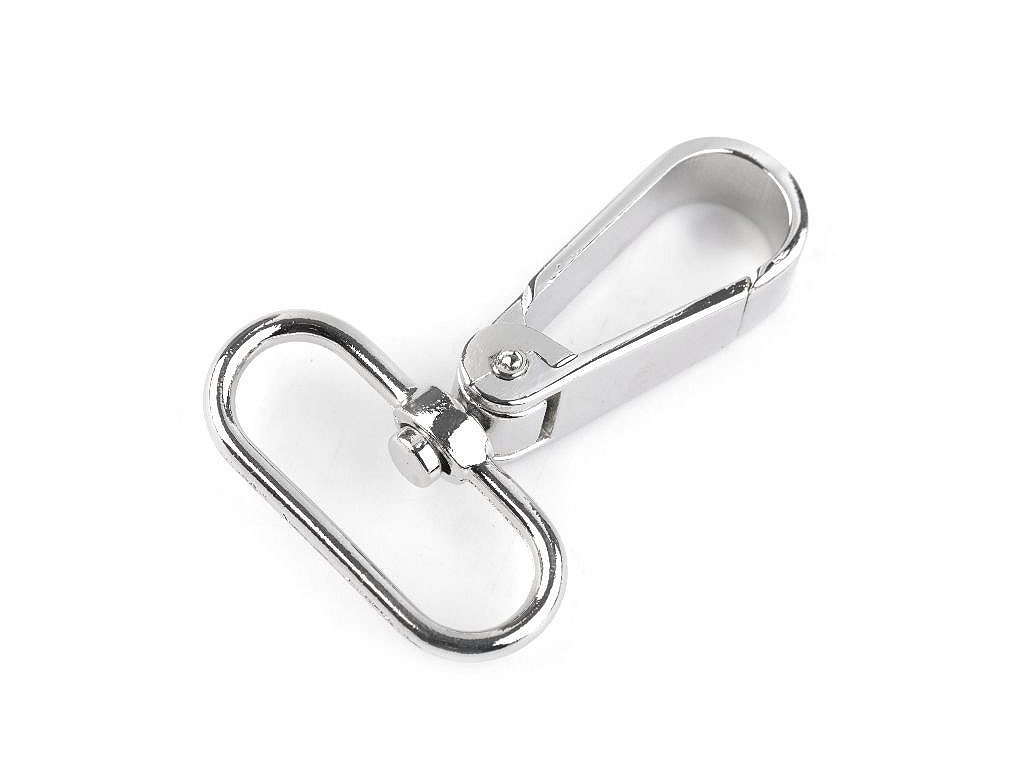Kovovou karabinu využijete na upevnění popruhů ke sportovním taškám a kabelkám. Můžete ji použít také na výrobu vodítek pro psy. Je otočná.