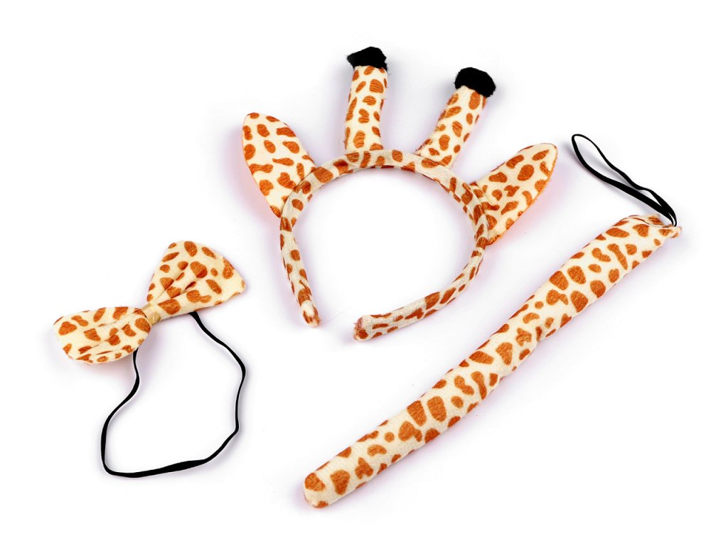 Karnevalová sada promění svého dětského nositele v roztomilou žirafu. Obsahuje čelenku s ušima a růžkama, motýlka a ocásek - vše je plyšové.