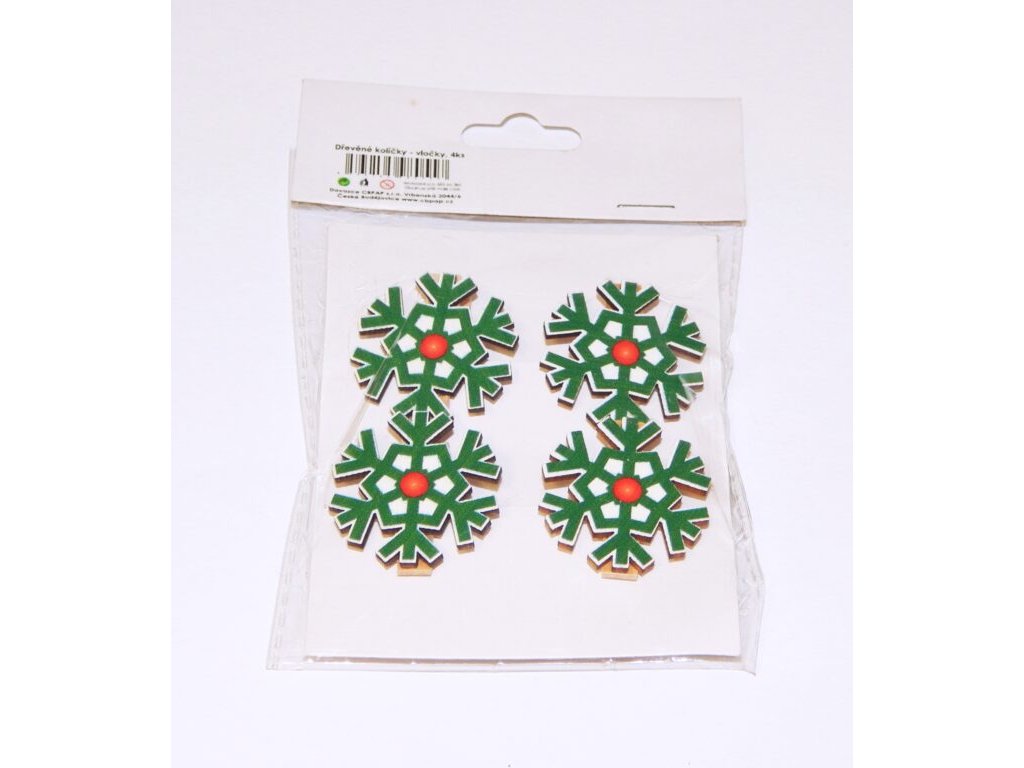Vánoční dekorační kolíček - dřevěné vločky 4ks (980557)