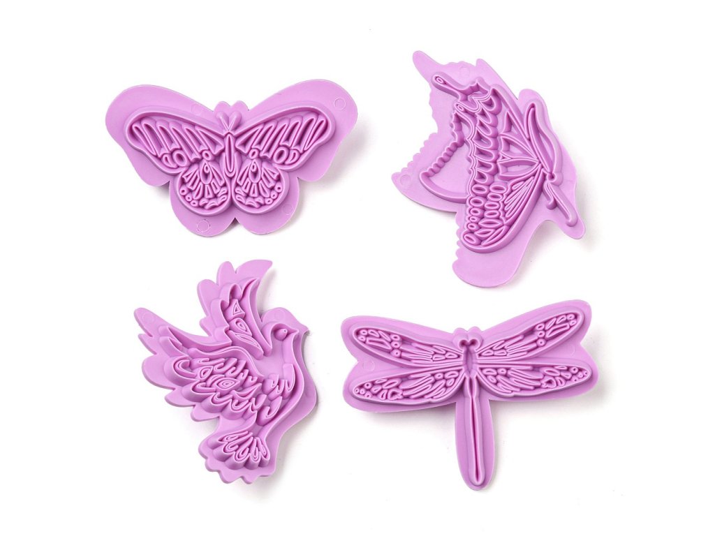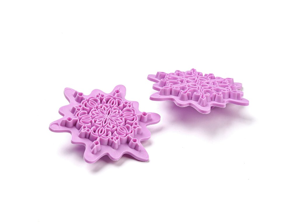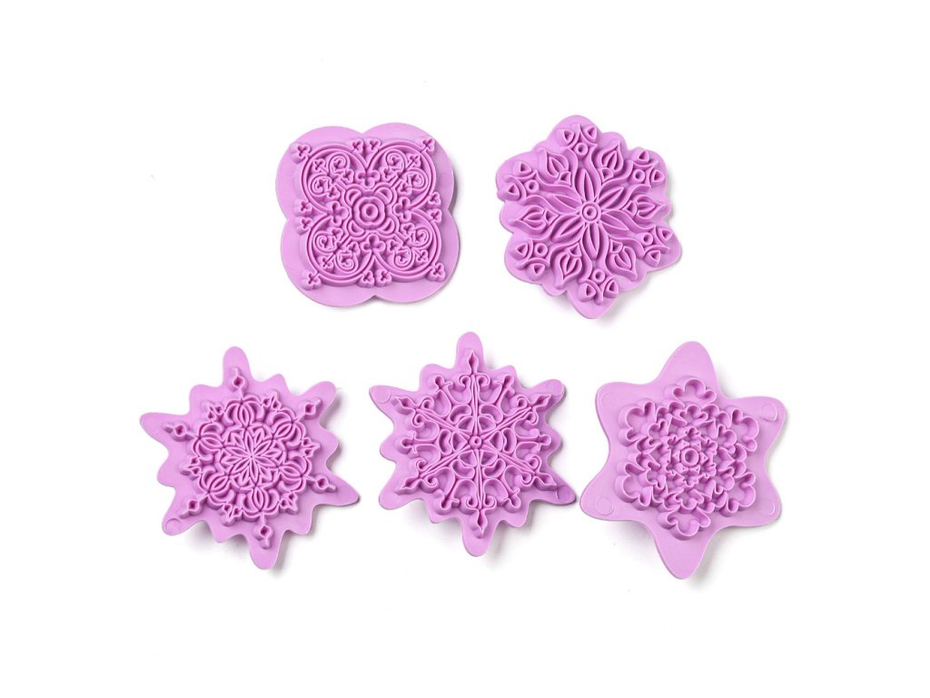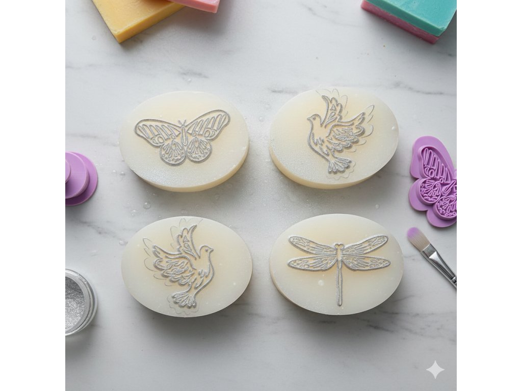 Sada obsahuje razítka s motivy vloček, květin, motýlů, ptáků a vloček, které jsou ideální pro výrobu náušnic, přívěsků z polymerové hlíny, texturování mýdla či dekorování keramiky.