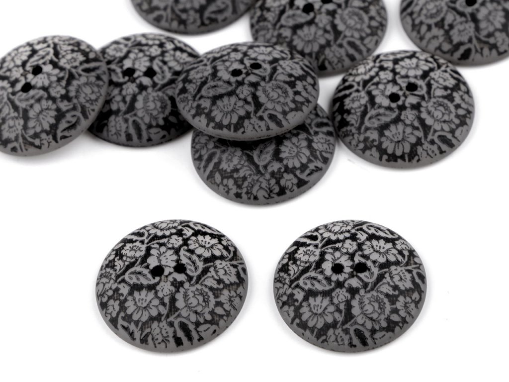 Knoflíky s květinovým motivem jsou z lícové strany vypouklé a mají matný povrch. Vyniknou na svetrech, vestách, sakách, bundách, kabátcích apod.