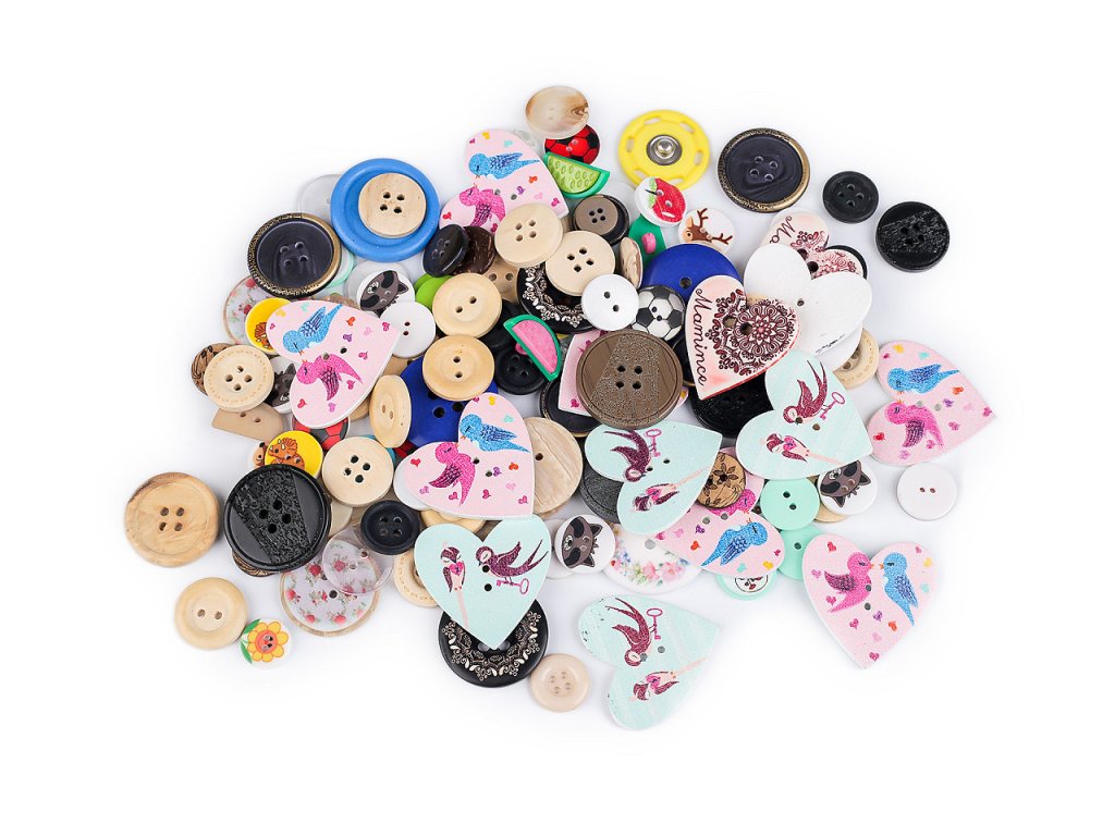 V mixu knoflíků najdete knoflíky různých druhů, barev, designů a velikostí.