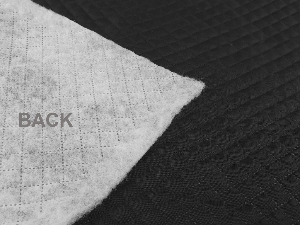 Kočárkovina je z rubové strany zateplená vatelínem. Není prošitá, vatelín je do kočárkoviny bodově zatavený.