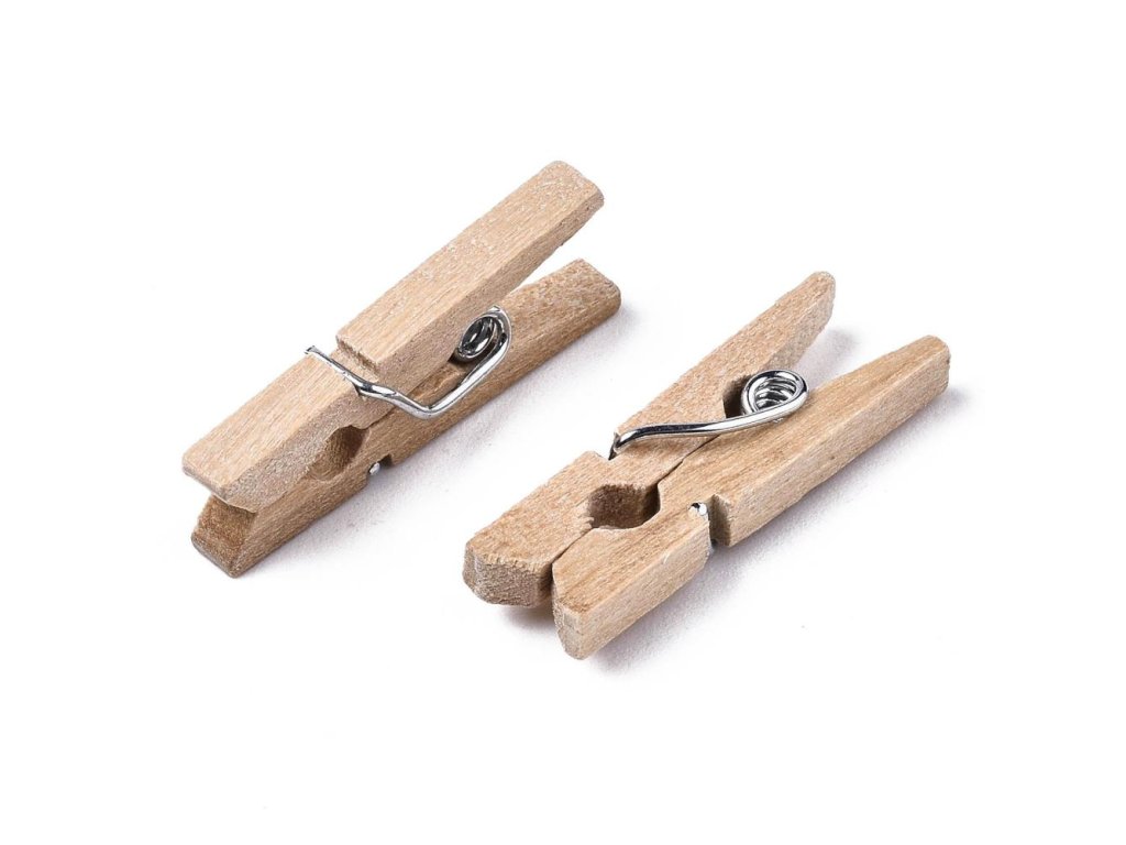 Dřevěné kolíčky v přírodní úpravě, ideální pro nejrůznější tvorbu - nástěnné dekorace z fotek, klipy na vzkazy, a mnohá další použití...