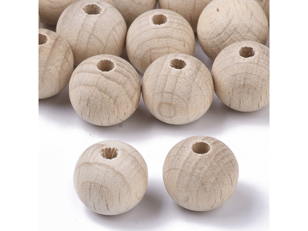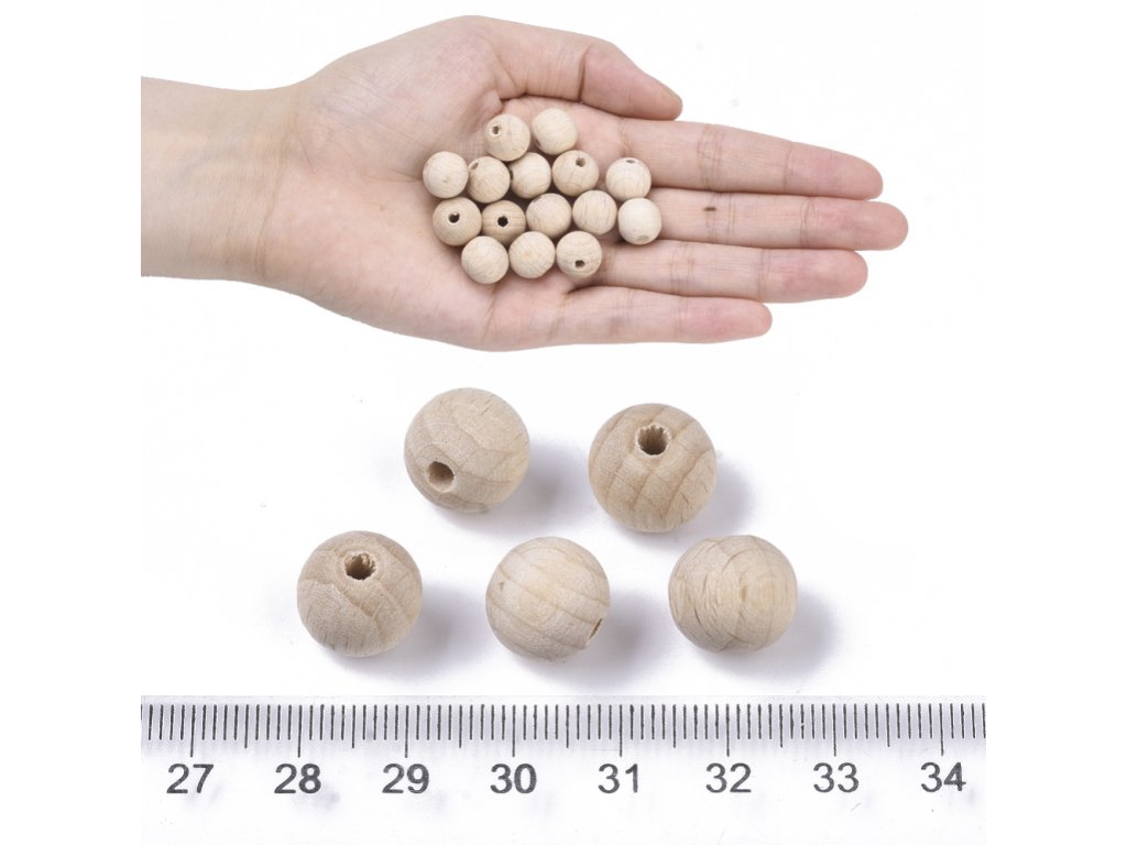 Klasické dřevěné korálky - buk. K výrobě uch na tašky či na tvorbu postaviček. Využívají se jako ozdoba různých macramé závěsů, houpaček, houpacích sítí apod.