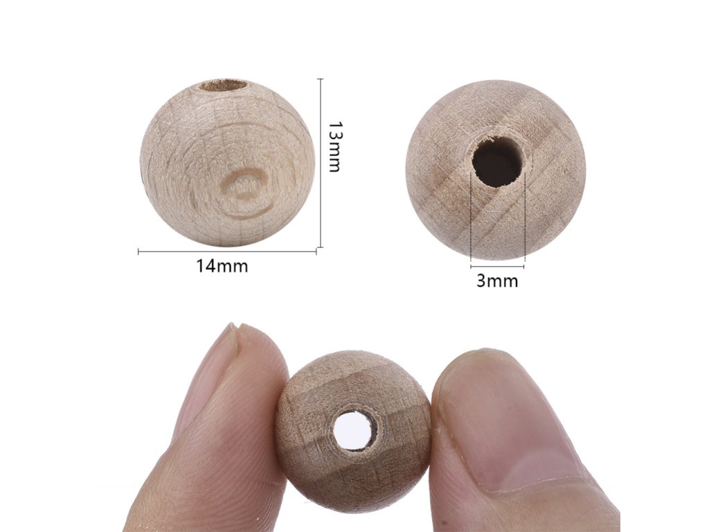 Klasické dřevěné korálky - buk. K výrobě uch na tašky či na tvorbu postaviček. Využívají se jako ozdoba různých macramé závěsů, houpaček, houpacích sítí apod.