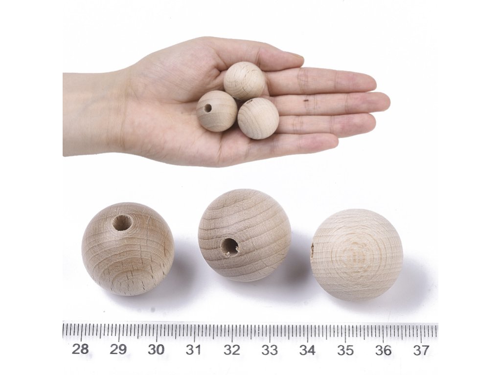Klasické dřevěné korálky - buk. K výrobě uch na tašky či na tvorbu postaviček. Využívají se jako ozdoba různých macramé závěsů, houpaček, houpacích sítí apod.