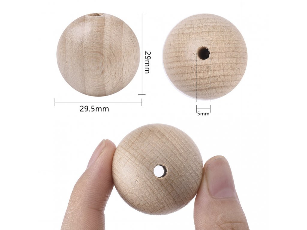 Dřevěné korálky, pr.30mm (5ks) - buk