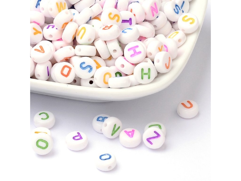 Korálky s barevnými PÍSMENKY pr.7mm (50ks)