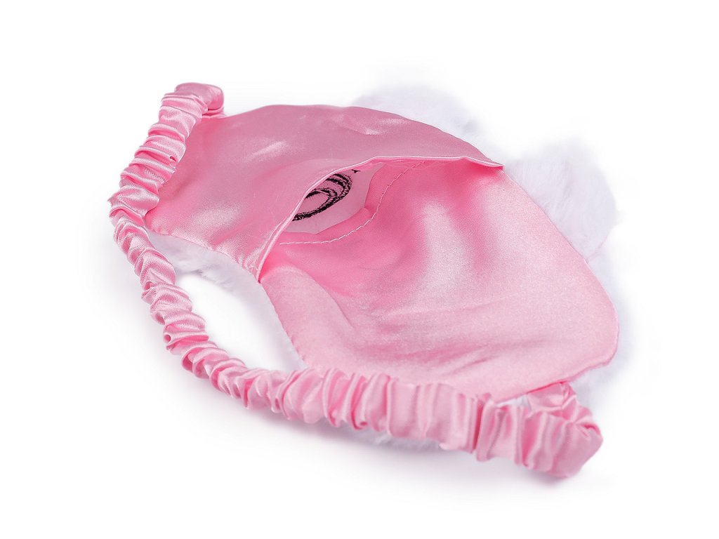 Maska na oči ve tvaru [zvířátka] má horní stranu ozdobenou [strojovou výšivkou]. Zaručí klidný a nerušený spánek doma i na cestách. Je pohodlná, měkká, příjemná na obličej, uvnitř má plochou pěnovku. Díky pružence okolo hlavy dobře sedí, skvěle se přizpůsobí, její velikost je univerzální.