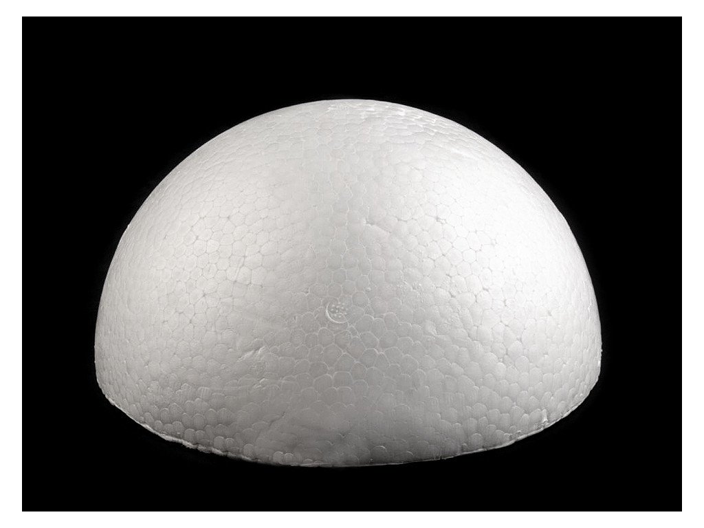 Polystyrenová polokoule je vhodná k tvorbě různých dekorací. Můžete ji ozdobit stuhami nebo umělými rostlinami a plody. [Je vhodná také jako model k různým výzkumům pro školy.]
