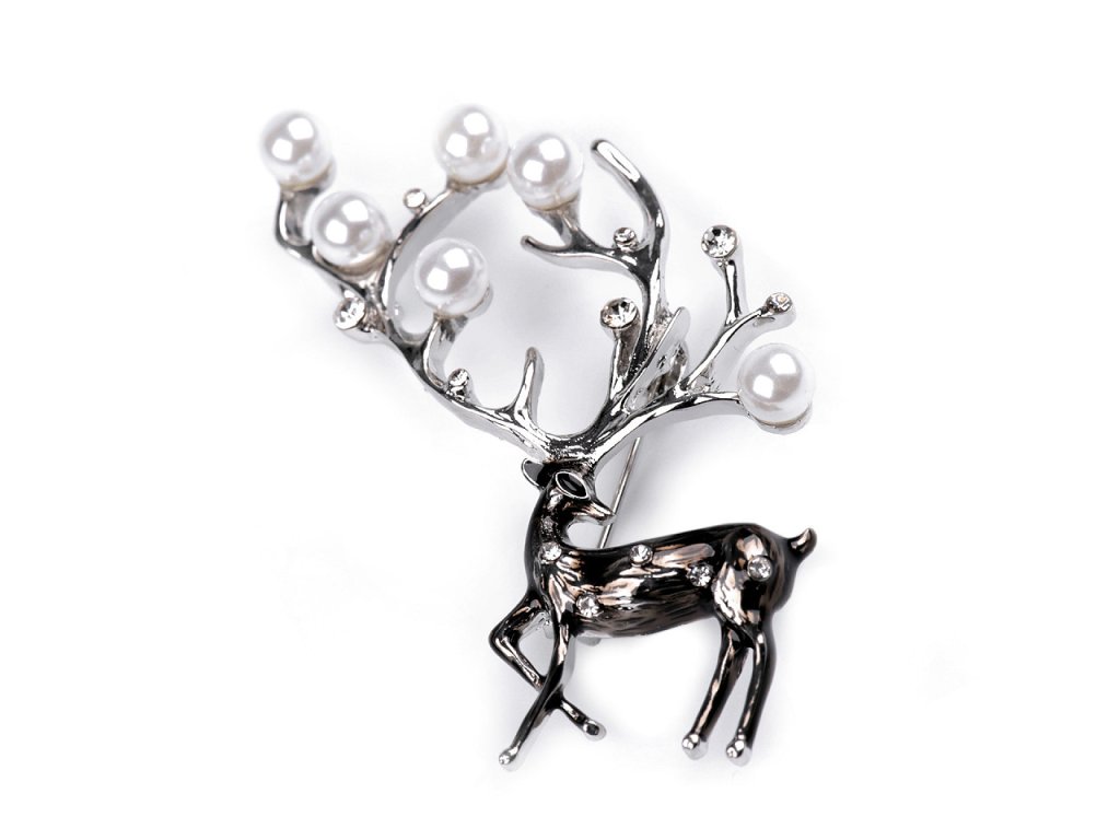 Elegantní smaltovaná brož s jelenem bude perfektním doplňkem vašeho oděvu. Díky perlám a třpytivým broušeným kamínkům skvěle dozdobí košile, saka, svetry, kabelky či čepice. Hodí se i na ozdobné sepnutí šátku.