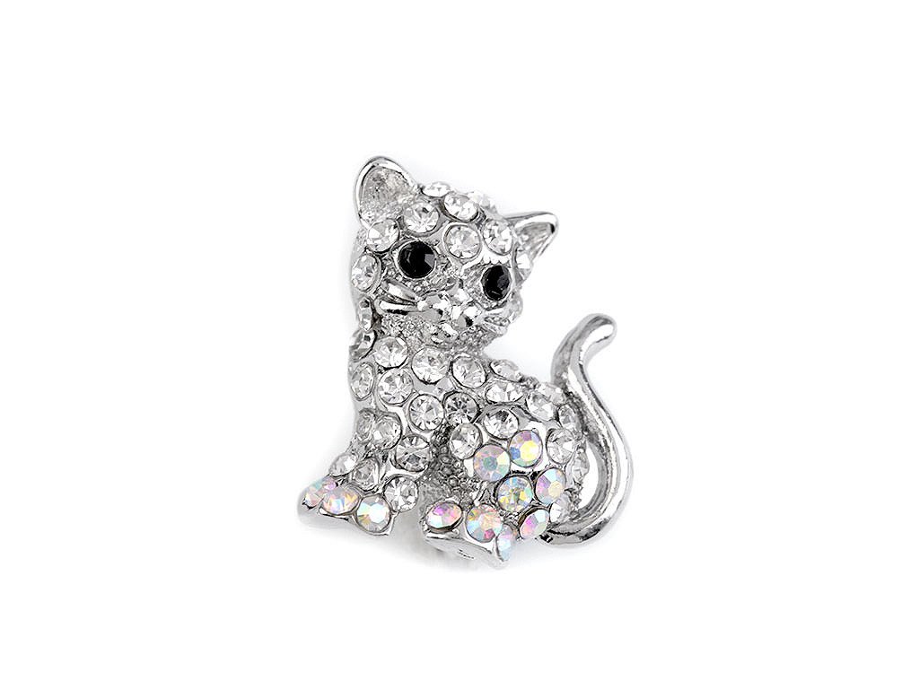 Brož s broušenými kamínky kočka