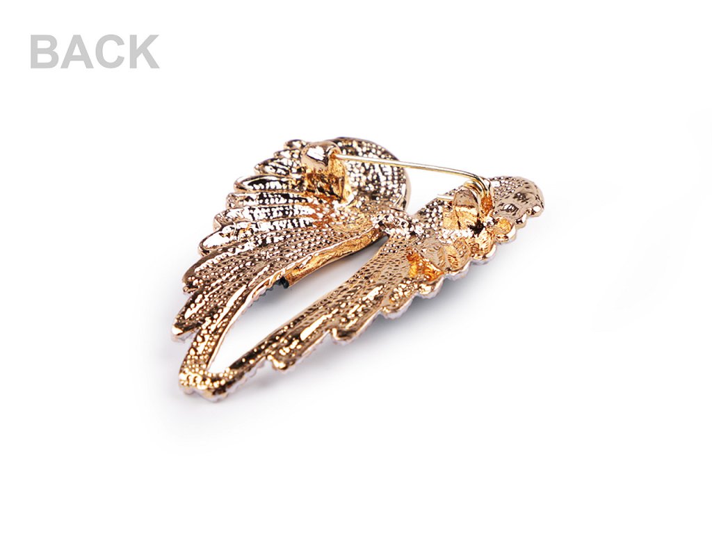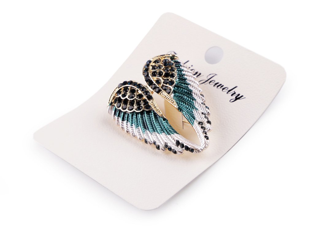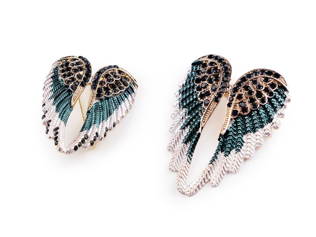 Brož křídel s barevným smaltem je velice poetická. Je ozdobená broušenými kamínky s jemným leskem, můžete ji využít na běžné nošení i na společenské události - návštěvy divadel, oslavy apod. Z rubu má brožový špendlík. Můžete ji nosit nejen na oděvech, hodí se i k ozdobení klobouků, tašky či sepnutí šátku.