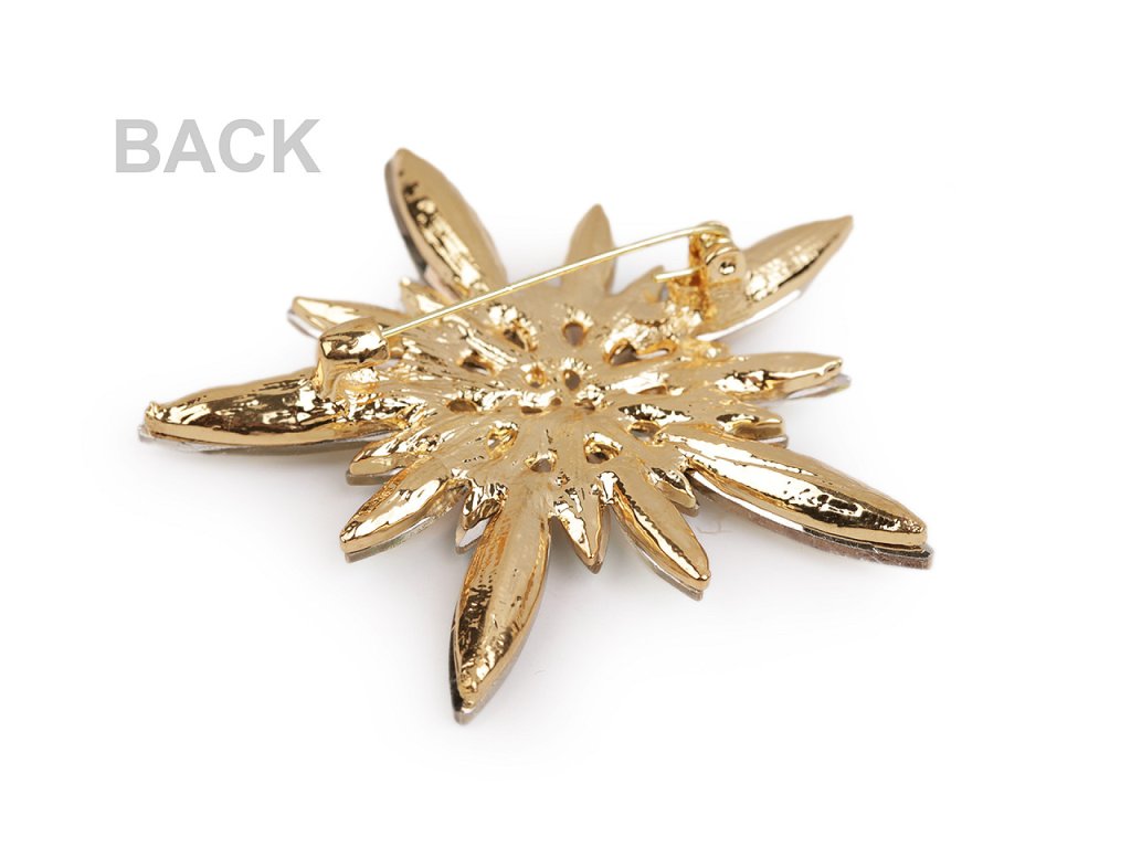 Třpytivá brož vločky je naprosto úchvatná. Díky broušeným kamínkům doslova oslňuje už z dálky. Navozuje dojem, jako by byla poskládaná z ledových sklíček. Můžete ji nosit na oděvech, kloboucích, taškách či s ní můžete sepnout šátek. Na zadní straně má brožový špendlík.