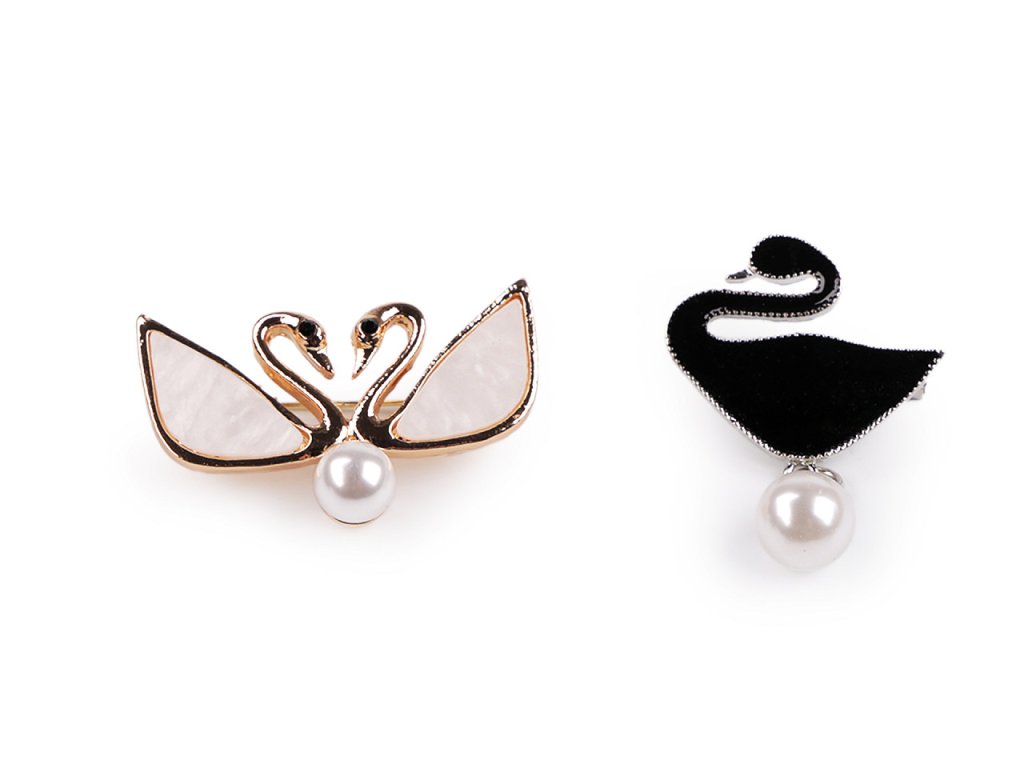 Brož s perlou labuť