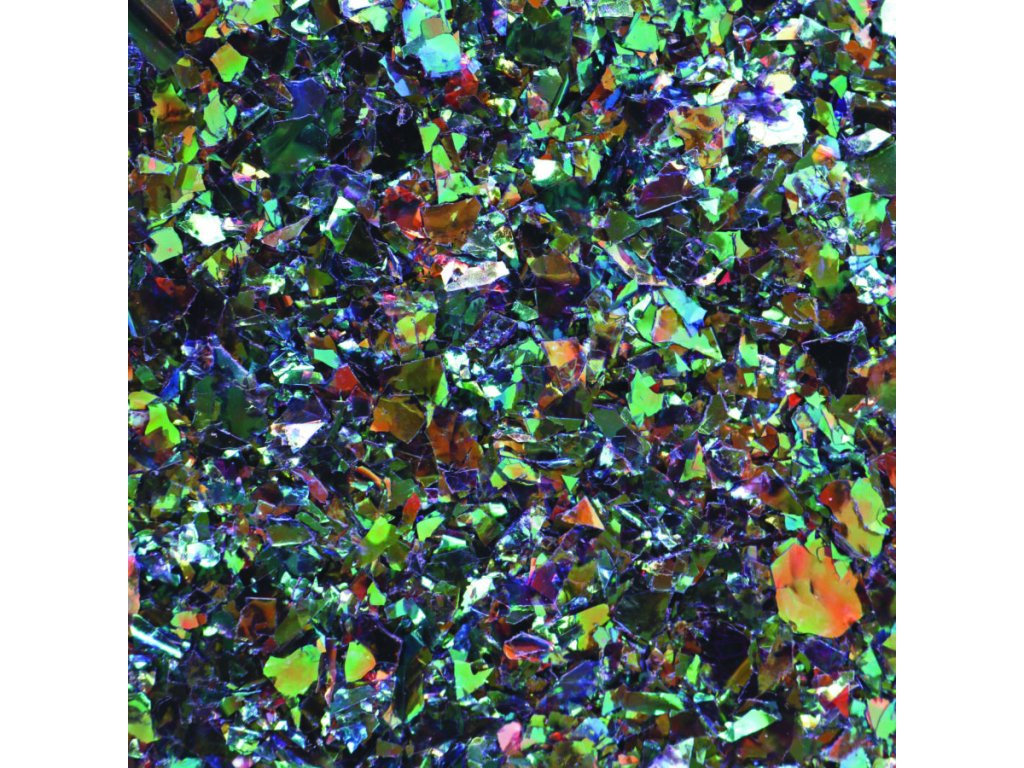 Duhové vločky nepravidelného tvaru.